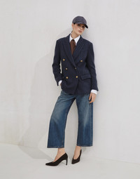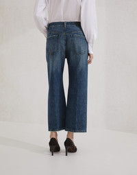 A casual attitude and tailored details define the style of these new contemporary square trousers. The garment features a cropped, boxy silhouette with a pressed crease that descends straight down the leg, for a relaxed yet sophisticated design. The monili embroidery on the rear belt loop adds a delicate sparkling note in true Brunello Cucinelli style. MATERIALS The new Authentic cotton fabric maintains the characteristically full, even texture of denim, but is also pleasantly soft and comfortable to wear. The lived-in look and special nuanced effect of the color have been created thanks to various dyes and washes. As a result, its hue may evolve and naturally lighten with washing and daily use, refined traits of the fabric itself. DETAILS Zip closure with button Front pockets with watch pocket Back patch pockets Nickel-free monili decoration 100% COTTON
