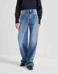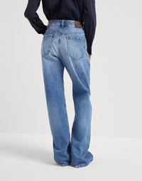 Casual styling and refined details characterize these new Authentic denim Loose trousers. The straight, relaxed and wide lines pair perfectly with the fabric’s slightly “vintage” look, characterized by faded, worn nuances. A precious monili label on the back pocket completes the garment with a sparkling, feminine note. MATERIALS The Authentic cotton fabric maintains the characteristically full, even texture of denim, but is also pleasantly soft and comfortable to wear. The lived-in look and special nuanced effect of the color have been created thanks to various dyes and washes. As a result, its hue may evolve and naturally lighten with washing and daily use, refined traits of the fabric itself. DETAILS Zip closure with button Front patch pockets with watch pocket Back patch pockets Nickel-free monili decoration 100% COTTON