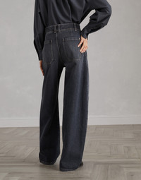 Authentic denim enhances the soft lines of these Soft Curved trousers. The harmonious contrast between the tailored pleats and the fabric’s slightly worn look creates a fresh interpretation of a design with timeless casual style. The wide, relaxed silhouette provides a comfortable fit. MATERIALS The new Authentic cotton fabric maintains the characteristically full, even texture of denim, but is also pleasantly soft and comfortable to wear. The lived-in look and special nuanced effect of the color have been created thanks to various dyes and washes. As a result, its hue may evolve and naturally lighten with washing and daily use, refined traits of the fabric itself. DETAILS Zip closure with button Front pockets Pleat Back patch pockets Nickel-free monili decoration 100% COTTON
