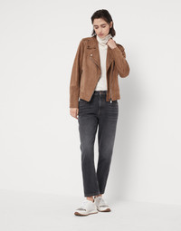 Essential, regular lines create a versatile, contemporary silhouette in these Authentic denim Straight trousers. On the back pocket, the iconic embellishment of the Brunello Cucinelli collections completes the garment with a feminine touch: the small label is entirely embroidered in fine rows of sparkling monili. MATERIALS The new Authentic cotton fabric maintains the characteristically full, even texture of denim, but is also pleasantly soft and comfortable to wear. The lived-in look and special nuanced effect of the color have been created thanks to various dyes and washes. As a result, its hue may evolve and naturally lighten with washing and daily use, refined traits of the fabric itself. DETAILS Zip closure with button Front pockets with watch pocket Back patch pockets Nickel-free monili decoration 100% COTTON