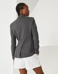 A sporty attitude blends together with sartorial sophistication in the new techno cotton pique jacket. The design features classic lapels, inspired by elegant formal menswear, accompanied by casual patch pockets, for a sophisticated blend of styles. The fit is slightly close-fitting at the waist and has a single button closure. The Solomeo heraldic coat of arms stands out on the chest, complementing the jacket with an iconic element. MATERIALS Research on the finest materials elevates the sporty feel of cotton pique, a menswear-inspired fabric. The presence of a synthetic fiber makes the fabric comfortable, lightweight and extremely pleasant to wear. DETAILS Horn button closure Half-lined Notched lapel Patch chest pocket Patch hand pockets Cuffs have four horn buttons Single back vent Nickel-free monili decoration 93% COTTON, 7% NYLON