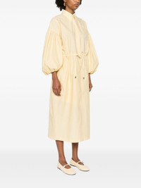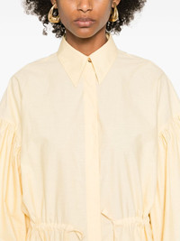 balloon-sleeve shirt maxi dress Highlights - Pastel yellow - Crinkled finish - Classic collar - Concealed front button fastening - Drawstring waist - Drop shoulder - Balloon sleeves - Elasticated cuffs - Flared - Front slit - Rear slit - Straight hem - Long length - Two side slit pockets Made in Italy Composition Acetate 74%, Silk 26% SIZE & FIT Model measurements Height 5 ft 11 in(1.8 m) Bust/Chest 31.49 in(80 cm) Hips 35.82 in(91 cm) Waist 24.8 in(63 cm) FittingInformation Designed to be unstructured, offering a loose fit throughout The adjustable drawstring means that you can adjust this piece’s fit to suit your comfort and preference Made from a lightweight non-stretch fabric This piece fits true to size – take your usual size