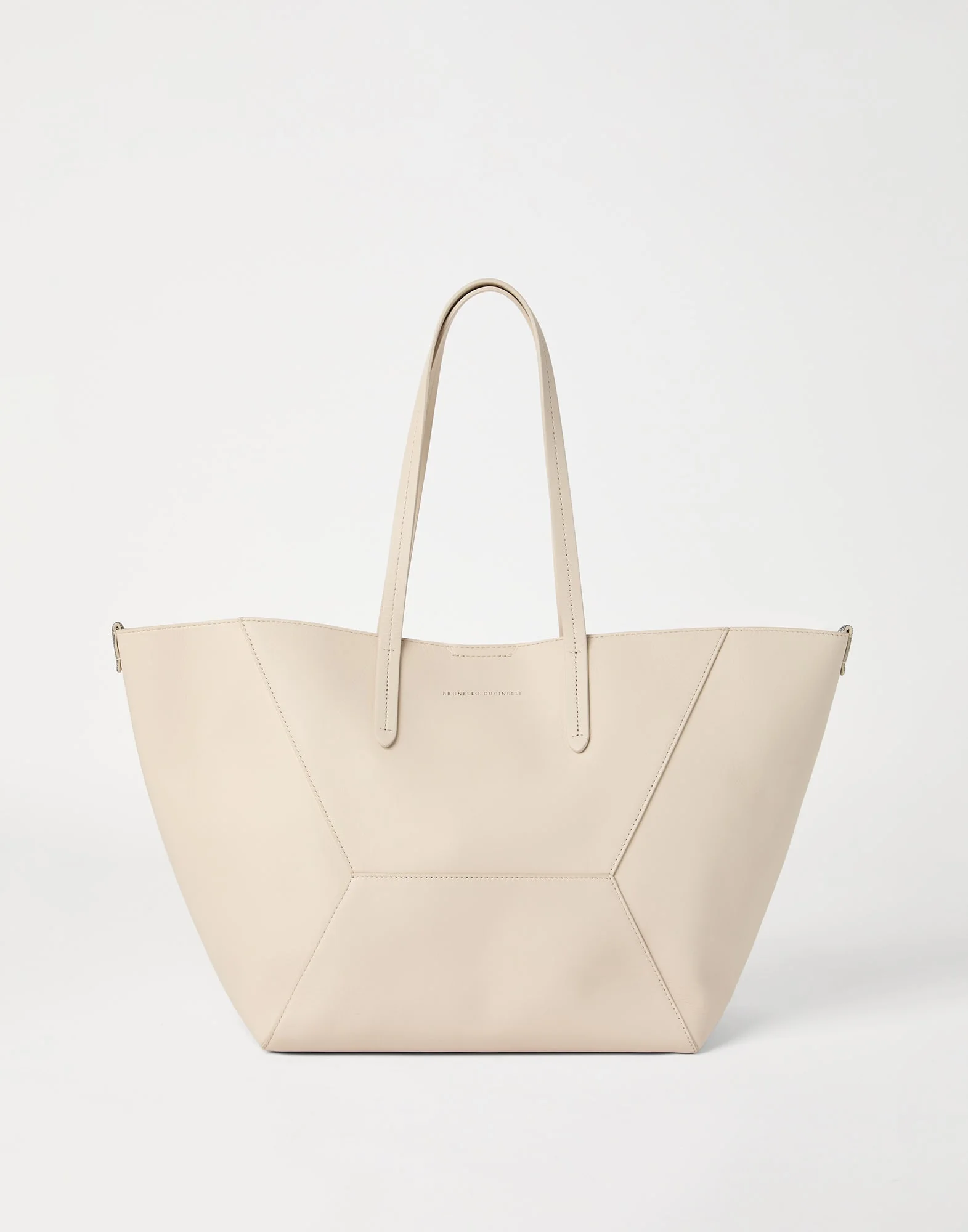 This calfskin BC Duo bag reinterprets the classic "everyday bag" in true Brunello Cucinelli style. The refined leather enhances the season’s colors with its rich, even texture, highlighting the visible seams that emphasize the square, minimal lines. If fastened, the internal ties on the sides allow the shape of the bag to change, making it more compact. Two monili embroideries complete the design with a delicate feminine sparkle. MATERIALS The refined calfskin showcases a smooth, soft and even texture. The leather’s matte appearance brings out the season’s colors with an intense, rich effect. DETAILS Magnetic snap closure Double handle Leather lining Internal pocket with zip closure Nickel-free monili decoration Bag is 53 cm (20.87") long, 25 cm (9.84") wide and 27 cm (10.63") high REAL LEATHER