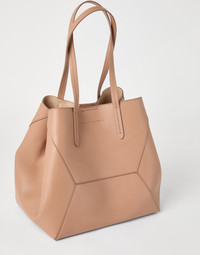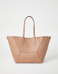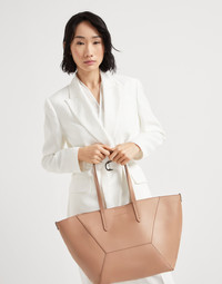 The calfskin BC Duo bag reinterprets the classic "everyday bag" in true Brunello Cucinelli style. With an ultra-soft hand, the leather enhances the accessory’s contemporary feel, highlighted by bold stitching that emphasizes the squared, minimal lines. A removable internal zipper pouch and the practical magnetic closure complete the style, while two monili embroideries add a feminine, sparkling note. If fastened, the internal ties on the sides allow the shape of the bag to change, making it more compact. MATERIALS Calfskin leather showcases a smooth, soft and even texture. The surface’s slightly matte appearance brings out the colors of the season with an intense, rich effect. DETAILS Magnetic snap closure Double handle Leather lining Internal pocket with zip closure Nickel-free monili decoration Bag is 53 cm (20.87") long, 25 cm (9.84") wide and 27 cm (10.63") high 100% REAL LEATHER