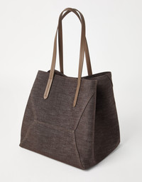 This no-fade denim BC Duo bag reinterprets the classic "everyday bag" in true Brunello Cucinelli style. The informal no-fade denim showcases the iconic contrasting stitching of denim trousers, a detail that enhances the accessory’s geometric lines. A removable internal zipper pouch and the practical magnetic closure complete the style, while two monili embroideries add a feminine sparkling note. If fastened, the internal ties on the sides allow the shape of the bag to change, making it more compact. MATERIALS The soft cotton denim is characterized by a delicate and slightly uneven color obtained with a special dyeing process in different stages. Thanks to this technique, the color appears slightly streaked, with an almost three-dimensional appearance. A very small percentage of spandex provides added comfort. DETAILS Magnetic snap closure Double handle Internal pocket with zip closure Nickel-free monili decoration Bag is 53 cm (20.87") long, 23 cm (9.06") wide, and 27 cm (10.63") high 100% COTTON