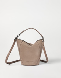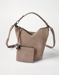The classic bucket is reinterpreted in a summery way, giving life to the suede BC Duo bucket bag. The material’s soft, velvety texture enhances the season’s colors and highlights the raised seams, which emphasize the design’s essential lines. Versatile and sophisticated, the bag can be carried in hand or on the shoulder thanks to its practical single handle and detachable shoulder strap, allowing for different styling options. A precious shiny monili embroidery illuminates the accessory with a delicate feminine sparkle. MATERIALS The refined suede is a compact leather with a soft, velvety texture. A leather lining completes the look of the bag. DETAILS Zip closure Handle Adjustable and detachable shoulder strap Detachable internal pochette with zipper Nickel-free monili decoration The bag is approximately 28 cm (11.02") long, 10.5 cm (4.13") wide, and 22 cm (8.66") high 100% REAL LEATHER