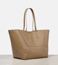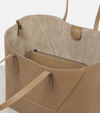 Brunello Cucinelli reimagines the everyday tote with the BC Duo bag, crafted from soft leather and defined by a geometric silhouette. This Large design showcases minimal lines enhanced by bold stitch detailing, and monili-embellished trims for a signature touch. Product Details - Material: leather - Lining: suede - Made in Italy - Designer color name: Sage - Item color: beige - Top handles - Hardware color: anthracite - Internal details: internal pouch - Closure: magnetic fastening - Item number: P01038085 Size & Fit - Height 30cm-12" - Max. width 50cm-19.5" - Max. depth 21,5cm-8.5" - Length of handles 52cm-20.5" - Clutch height 14,5cm-5.5" - Clutch width 23cm-9"