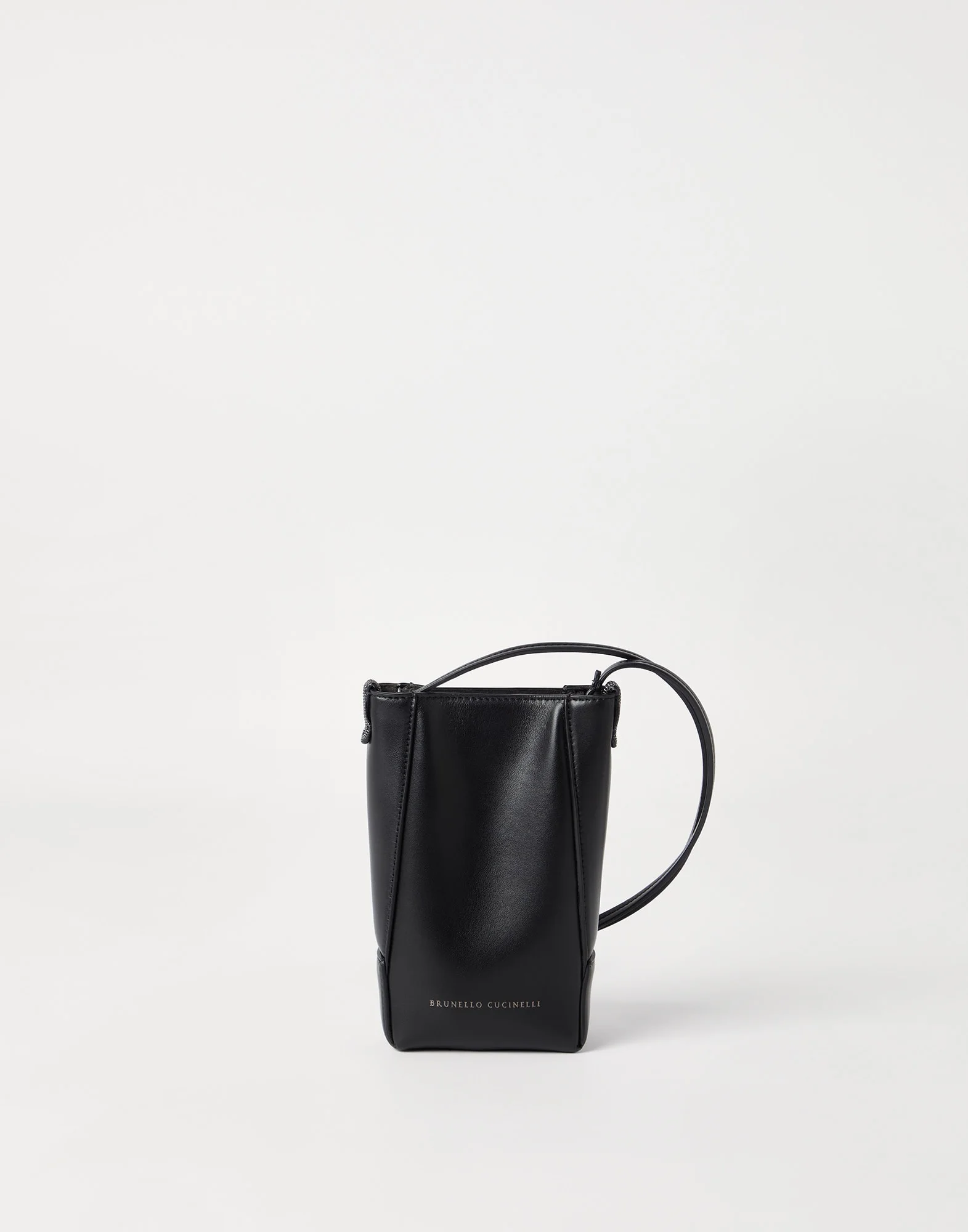 A new accessory enriches the season’s outfits with a practical touch that is contemporary at the same time. The BC Duo phone holder is made of refined calfskin with an ultra-soft hand that enhances the season's colors. The rows of shiny monili embroidered edges complete the accessory with a sparkling detail in true Brunello Cucinelli style. MATERIALS The refined calfskin showcases a smooth, soft and even texture. The surface’s slightly matte appearance brings out the collection’s colors with an intense, rich effect. DETAILS Magnetic snap closure Shoulder strap Suede lining Nickel-free monili decoration Bag is 14 cm (5.51") long, 5 cm (1.97") wide, and 19 cm (7.48") high REAL LEATHER
