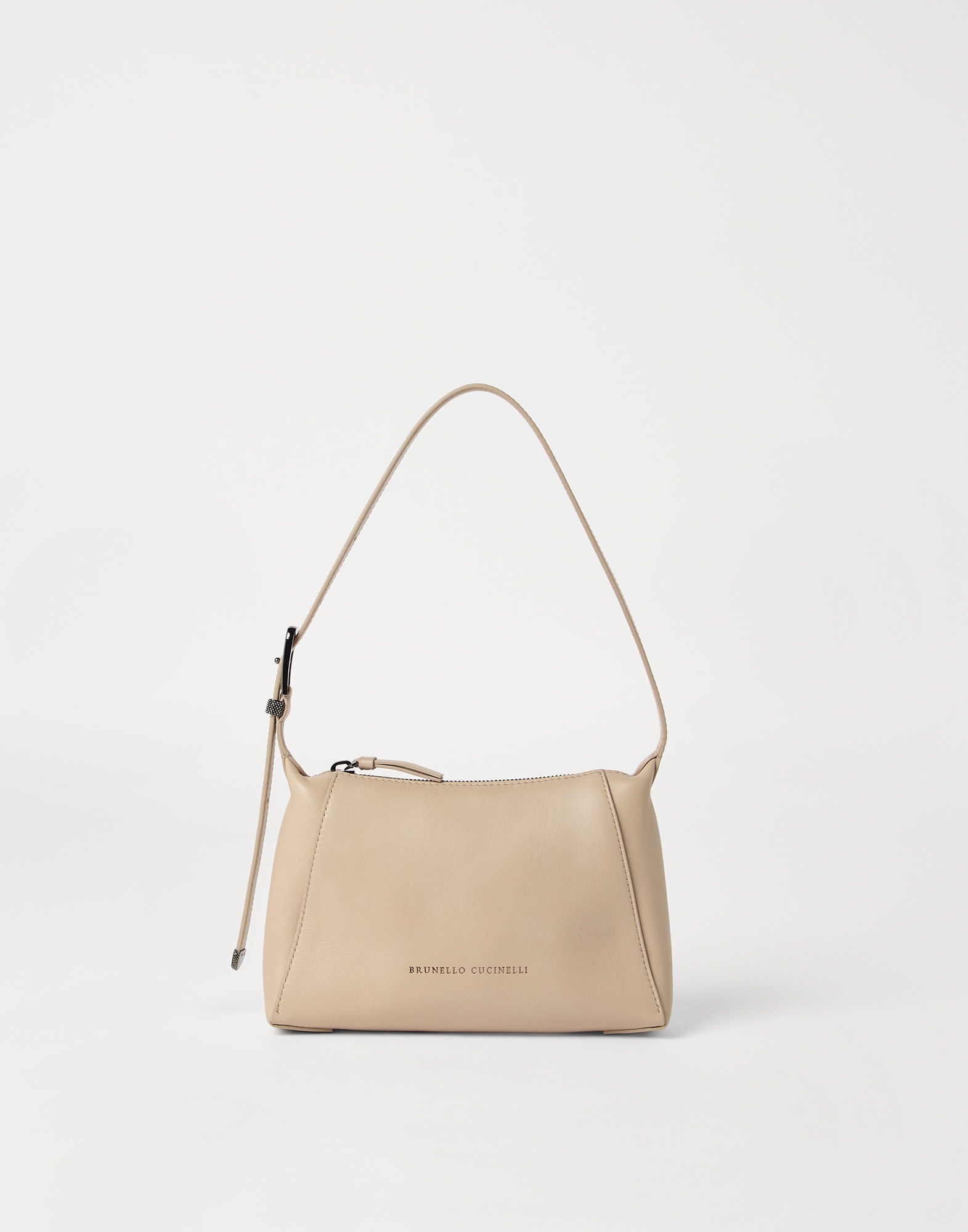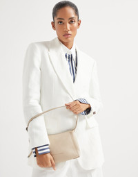 Refined materials and a retro silhouette enrich this new BC Duo Shoulder bag, which is perfect in size and versatile in style. The soft nappa complements the accessory’s essential lines, completed by a functional zipper closure and a thin adjustable shoulder strap. The shiny monili embroidery adds a sparkling note in true Brunello Cucinelli style. MATERIALS The refined nappa is characterized by an ultra-soft texture that is very nice to the touch. The finish gives the design a polished appearance that enhances the leather’s fine natural grain. DETAILS Zip closure Adjustable shoulder strap Leather lining 1 slot for cards and business cards Nickel-free monili decoration Bag is 23 cm (9.06") long, 4.5 cm (1.77") wide, and 15 cm (5.91") high REAL LEATHER