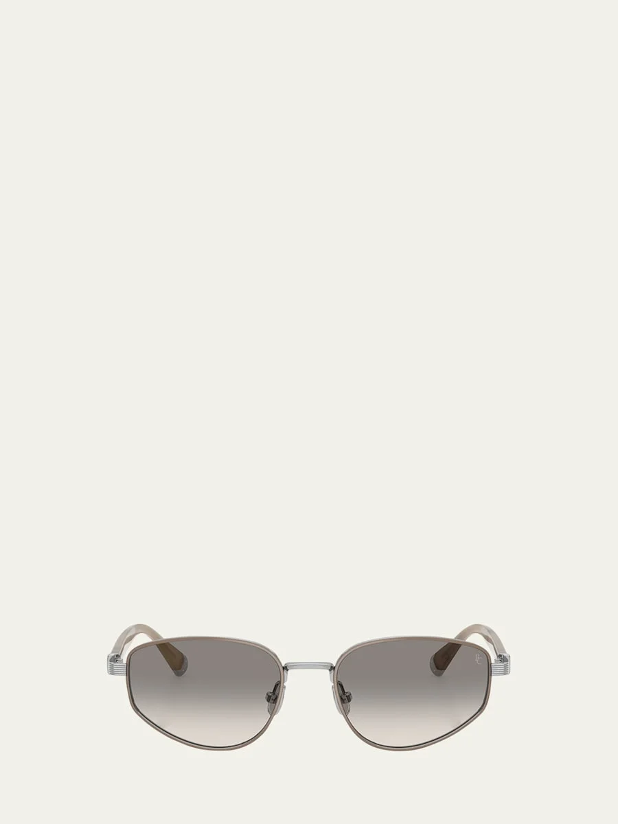Brunello Cucinelli "BC2008ST" oval sunglasses in titanium Lens/bridge/temple (in mm): 54-18-145 Gradient lenses Logo on corner Adjustable nose pads Thin, tapered arms Comes with case and cloth Titanium Spot clean 100% UVA/UVB protection Made in Italy Proposition 65 warning for California residents Online Inquiries: BGS21_D56XT| Store Inquiries: #5001746