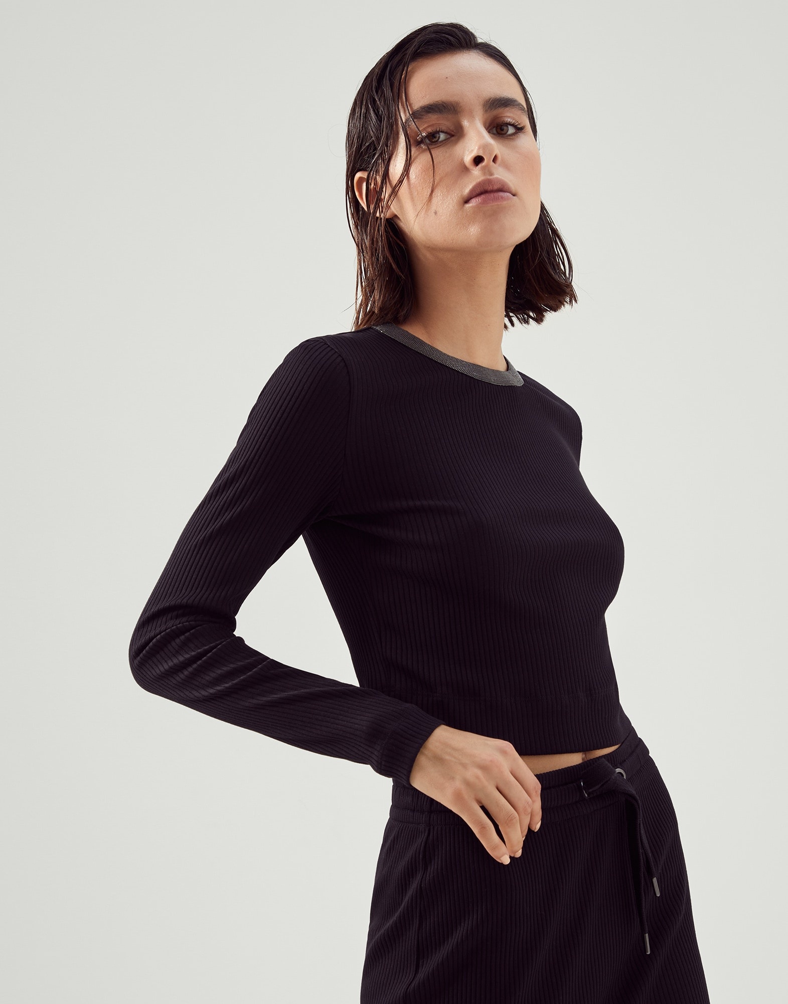 Crafted in a variety of shapes, the season's topwear embodies elegant styling solutions. Premium fabrics and precious touches renew timeless models. New interpretations of iconic monili details enhance simple and classic shapes. Expressing the important seasonal themes, the top and T-shirt collection embraces and enriches the very essence of Brunello Cucinelli design. MATERIALS Breathable and lightweight, soft or naturally textured; each fabric is selected for its intrinsic characteristics. A range of colors and designs unite with classic and new fibers to ensure functionality that blends perfectly with a luxury casual style. DETAILS Designed in Solomeo and handcrafted in Italy 98% COTTON, 2% ELASTANE