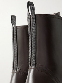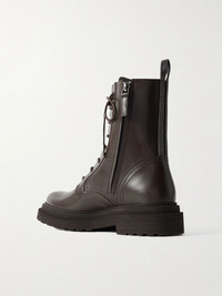 Brunello Cucinelli's ankle boots may be modeled on classic combat styles but the signature Monili beads along the back give them a cool, glamorous feel. They've been made in Italy from smooth leather and feature zip fastenings for easy on and off. Size & Fit - Fits true to size, take your normal size - Italian sizing Details & Care - Heel measures approximately 30mm/ 1 inch - Dark-brown leather - Lace-up front, concealed zip fastening along side