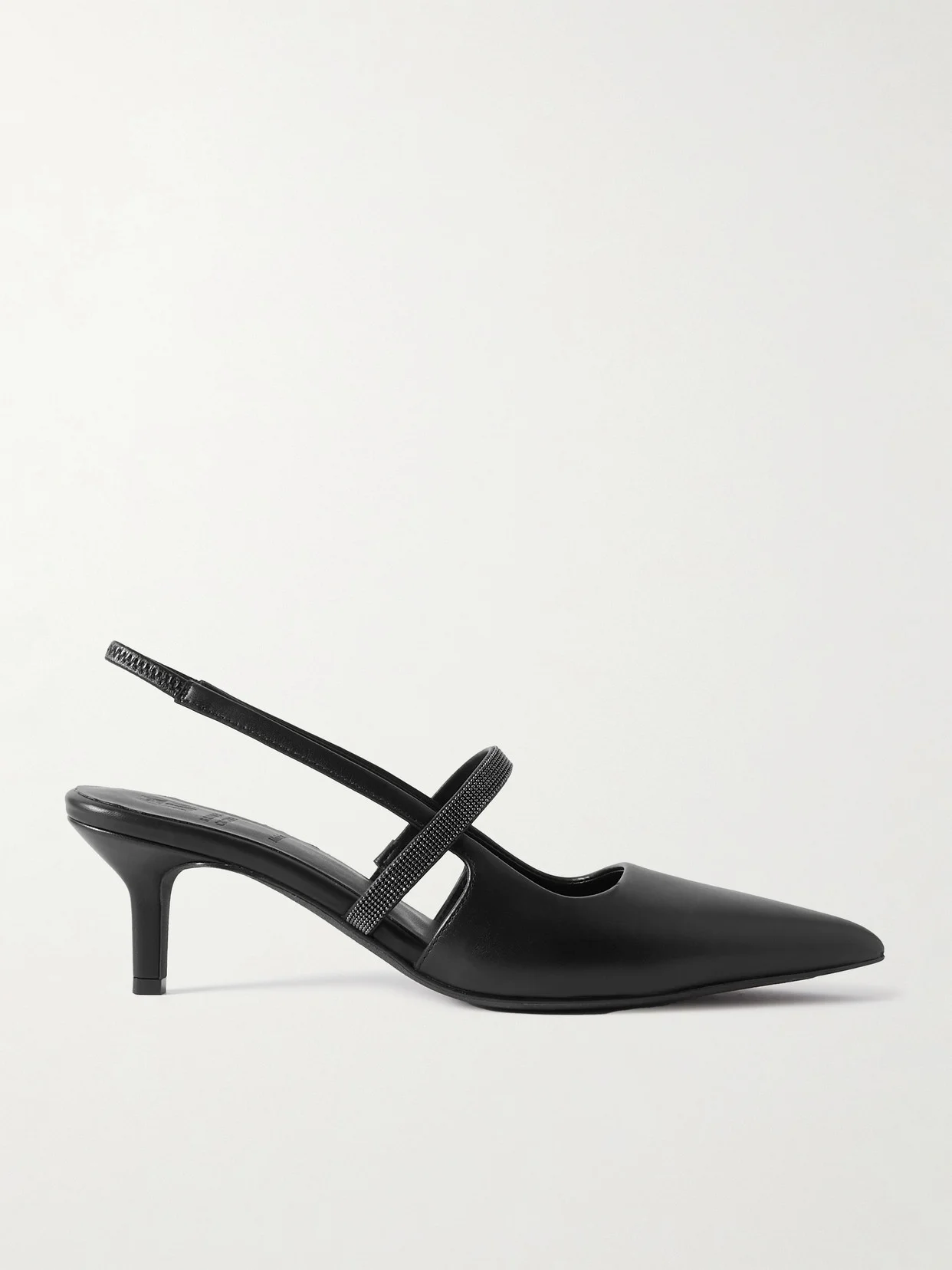Brunello Cucinelli's pumps twinkle with the label's signature Monili beading along the straps. Crafted in Italy from leather, they have sharply pointed toes and 55mm kitten heels that offer a comfortable amount of lift.
