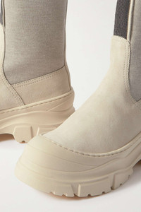 Bead-embellished suede and stretch-knit Chelsea boots