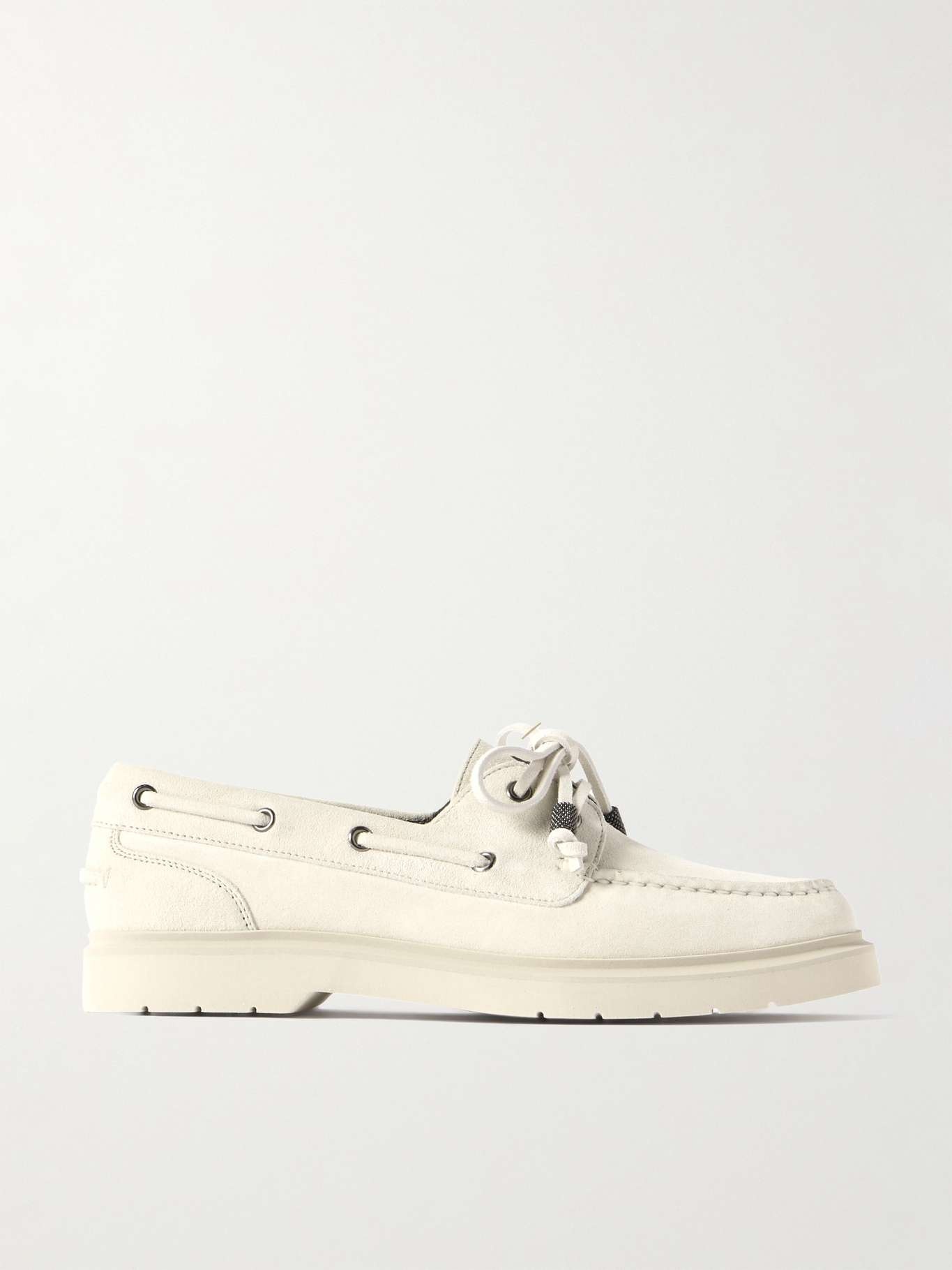EDITORS'NOTES Brunello Cucinelli’s loafers take from classic boating styles. Set on gripped rubber soles, they’ve been made in Italy from smooth suede with matching laces that are tipped with the brand’s light-catching Monili beads. SIZE & FIT - Fits true to size, take your normal size - Italian sizing DETAILS & CARE - Heel measures approximately 10mm/ 0.5 inches - Cream suede (Calf) - Slip on