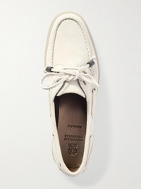 Brunello Cucinelli's loafers take from classic boating styles. Set on gripped rubber soles, they've been made in Italy from smooth suede with matching laces that are tipped with the brand's light-catching Monili beads. Large to size. See Size & Fit notes.