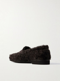 Brunello Cucinelli's fluffy shearling loafers are the kind of cool style that comes to mind when hearing the phrase "dress from the feet up". They have suede penny straps encrusted with the house's signature 'Monili' beads and are set on slight heels for comfortable lift. Size & Fit - Fits true to size, take your normal size - Italian sizing Details & Care - Heel measures approximately 15mm/ 0.5 inches - Brown shearling and suede (Lamb) - Slip on