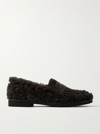 Bead-embellished Suede-trimmed Shearling Loafers