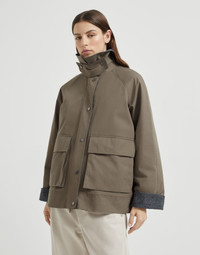 Oversized proportions and precious details define the style of this techno cotton canvas jacket with Thermore® padding. The garment showcases large flap patch pockets on the front with a utility wear feel, while the throat latch adds a functional, technical element. The iconic monili embroidery along the zipper closure adds a sparkling touch in true Brunello Cucinelli style. MATERIALS Techno cotton canvas features a dry hand and a slightly matte appearance. The Thermore® padding guarantees the right amount of protection. DETAILS Double closure with zip and snaps Water-resistant nylon lining Removable neck strap Hand pockets with flap Thermore® padding Nickel-free monili decoration 67% COTTON, 20% NYLON, 13% POLYURETHANE