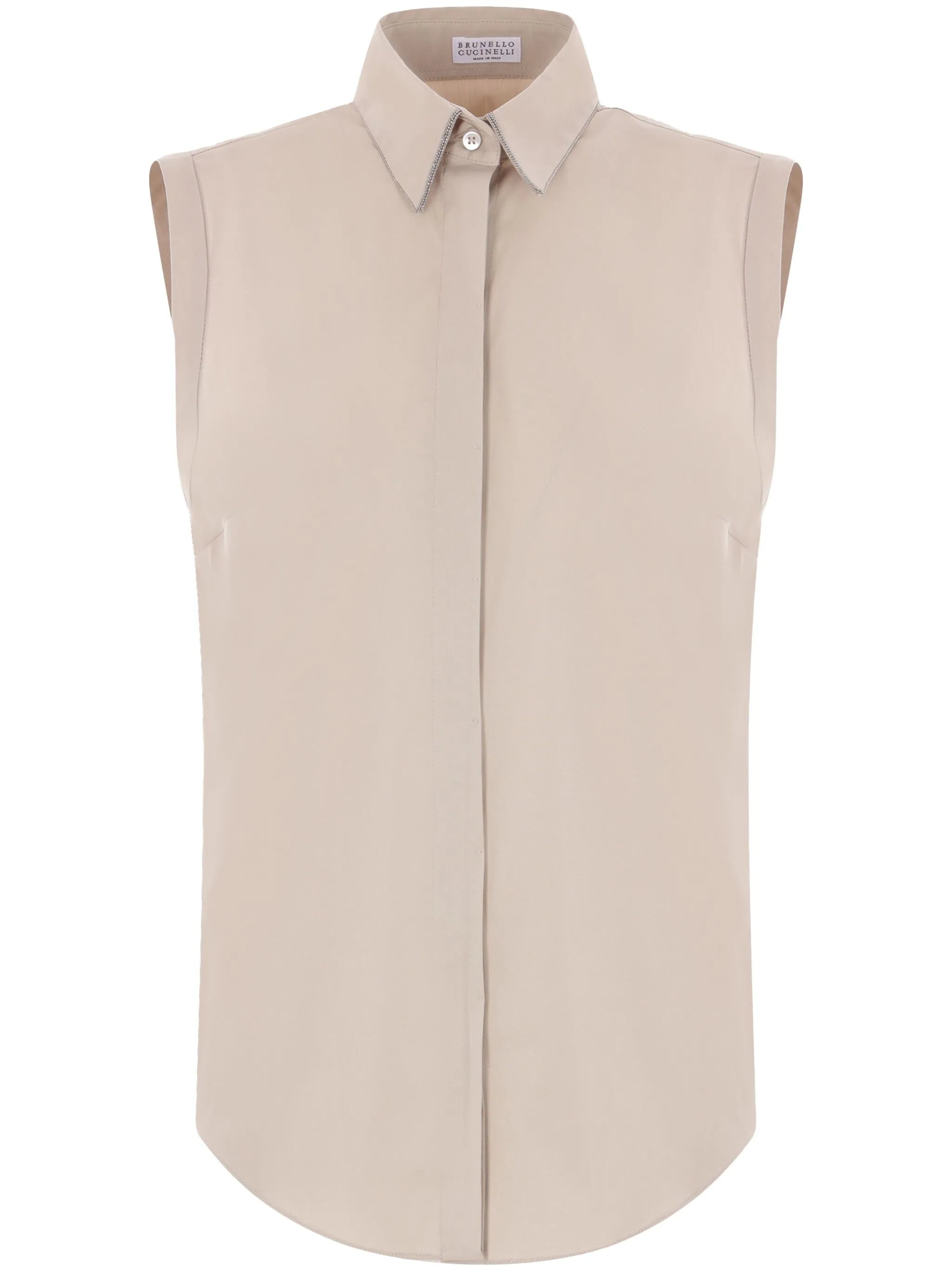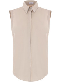 beige concealed front button fastening classic collar sleeveless curved hem - Color: NEUTRALS - Made in: Italy - Designer Style ID: M0091MA616 C7498 Composition and care Cotton: 72.0%, Polyamide: 23.0%, Elastane: 5.0%