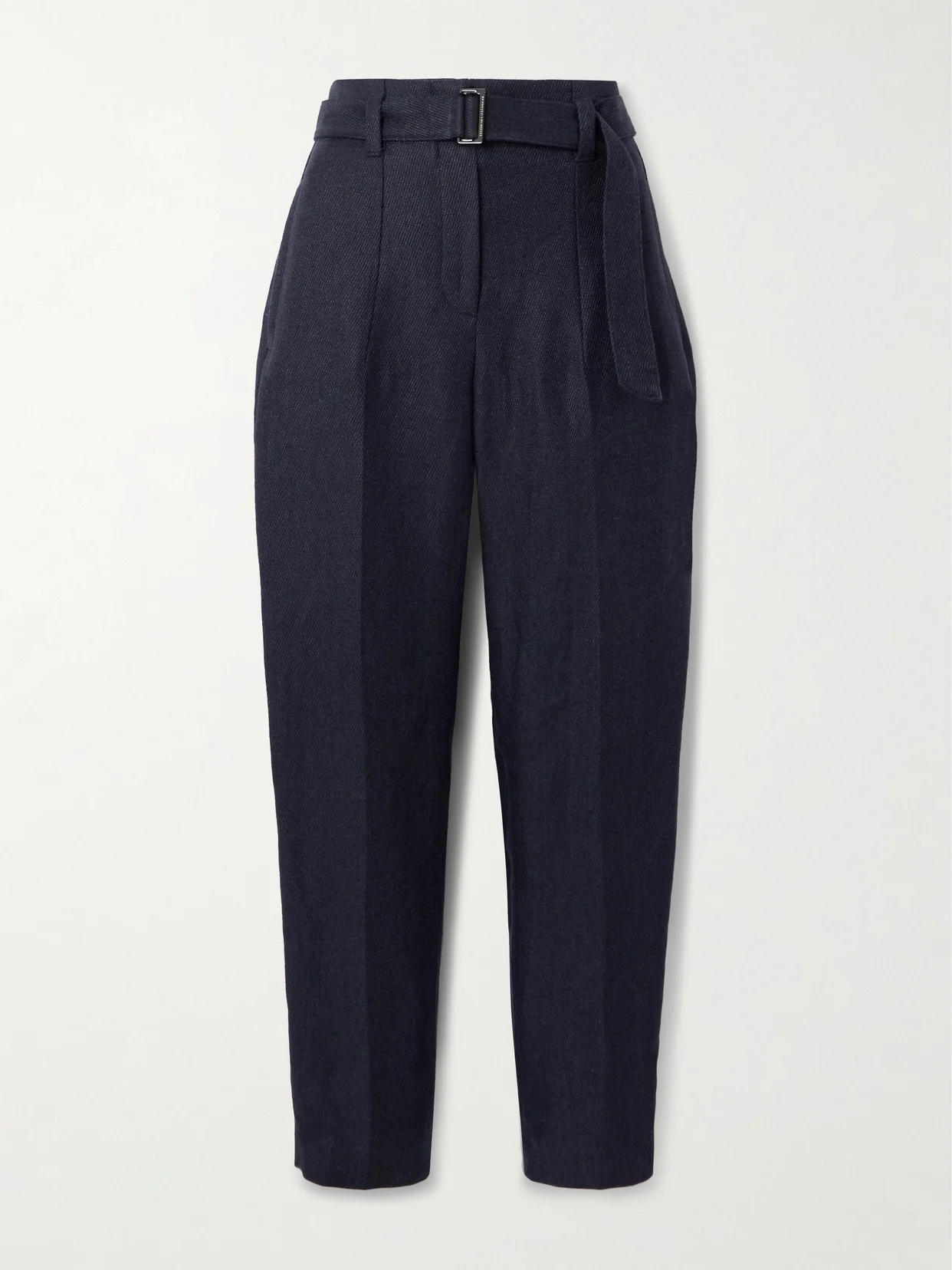 Brunello Cucinelli's pants are one of those styles that transitions effortlessly from the office to casual weekend plans. Made from breathable linen-twill, they're designed with a high, darted waist that's threaded with a coordinating belt. The tapered legs have pressed creases and fall to cropped hems.