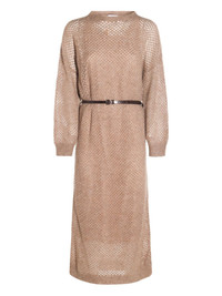 open-knit midi dress Highlights - Light brown - Detachable and adjustable waist belt - Sequin embellishment - Internal slip dress Made in Italy Composition Mohair 42%, Polyamide 30%, Cotton 12%, Virgin Wool 11%, Polyester 5%