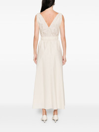 belted V-neck midi dress Highlights - Beige - V-neck - Belt - Side slits - Sleeveless - Gathered detail Made in Italy Composition Outer: Eco Brass 100%, Cotton 75%, Polyamide 25% Lining: Acetate 74%, Silk 26% SIZE & FIT Model measurements Height 5 ft 10 in(1.78 m) Bust/Chest 33.46 in(85 cm) Hips 36.22 in(92 cm) Waist 23.22 in(59 cm) Washing instructions Dry Clean Only