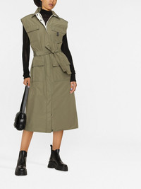 belted-waist sleeveless coat military green cotton blend two side flap pockets belted waist concealed front fastening pointed flat collar sleeveless mid-length straight hem Made in Italy Composition Outer: Eco Brass 100%, Polyester 55%, Cotton 45% Lining: Nylon 100%, Polyester 100% SIZE & FIT Model measurements Height 5 ft 10 in(1.78 m) Bust/Chest 30.31 in(77 cm) Hips 36.61 in(93 cm) Waist 24.8 in(63 cm) FittingInformation This piece fits true to size. We recommend you get your regular size Cut for a loose fit. Comes with an adjustable belt for a flexible fit at the waist Made with a mid-weight non-stretch fabric