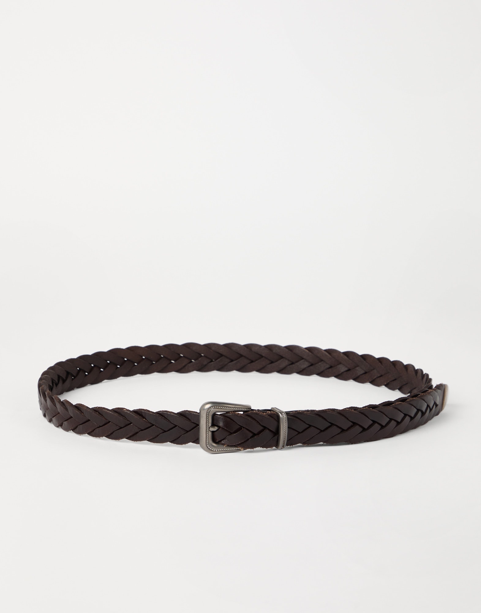 Crafting of the refined woven leather enriches the contemporary style of this belt with a special slightly three-dimensional texture. The precious shiny monili insert on the buckle, loop and tip enriches the accessory with a feminine note. MATERIALS The woven design of the belt is made with refined calfskin leather, characterized by a rich, even grain. DETAILS Belt height approx. 3.5 cm (1,38") 100% REAL LEATHER