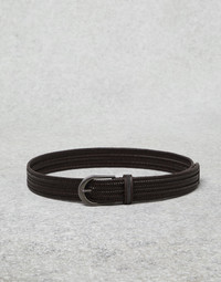 Manufacturing of the refined woven leather enriches the contemporary style of this belt with a special slightly three-dimensional texture. The precious shiny monili embroidery on the belt loop adds a feminine note, while the embellishment that runs along the edge of the buckle completes the accessory with a sophisticated touch. MATERIALS The woven design of the belt is made with refined calfskin leather, characterized by a rich, even grain. DETAILS Belt height approx. 3,5 cm Nickel-free monili decoration 70% REAL LEATHER, 23% VISCOSE, 7% RUBBER