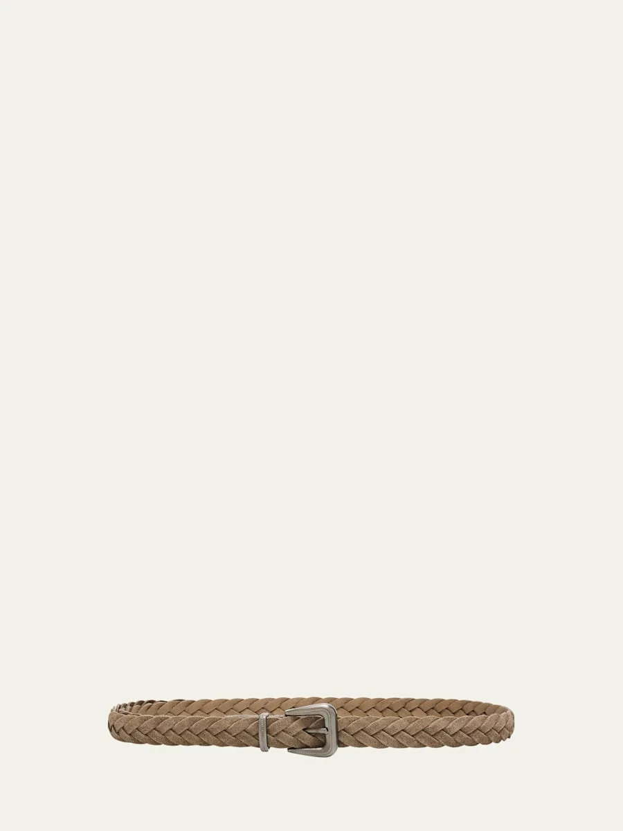 Brunello Cucinelli channels Western style with this woven belt crafted from calfskin leather. A silvertone loop and buckle enhanced with monili trim add a touch of sparkle. Buckle closure Adjustable fit Cut to size Leather Made in Italy