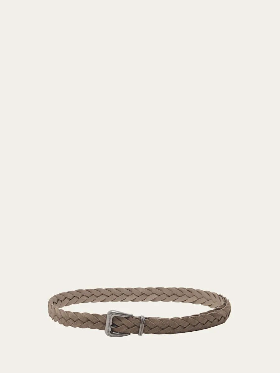 Brunello Cucinelli braided belt in suede Silvertone hardware Buckle closure Suede Made in Italy Online Inquiries: BGS21_D5AA5| Store Inquiries: #5040838
