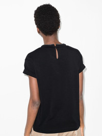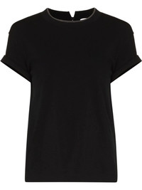 round-neck short-sleeve T-shirt Brunello Cucinelli pairs modern designs with classic Italian craftsmanship. Showcased on this short-sleeve T-shirt, the garment features understated details such as metallic threading and a keyhole detail which creates a contemporary feel. Made in Italy Composition Cotton 93%, Spandex/Elastane 7% SIZE & FIT Model measurements Height 5 ft 11 in(1.81 m) Bust/Chest 31.49 in(80 cm) Hips 35.82 in(91 cm) Waist 22.83 in(58 cm) FittingInformation This piece fits true to size. We recommend you get your regular size Cut for a relaxed fit Made with a mid-weight fabric Washing instructions Hand Wash