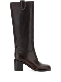 leather knee-high boots Highlights - Brown - Leather - Slip-on style - Block heel - Round toe - Branded insole Made in Italy Composition Sole: Rubber 100%, Calf Leather 100% Lining: Calf Leather 100% Outer: Calf Leather 100% SIZE & FIT Measurement HEEL 2.95 in(7.5 cm)