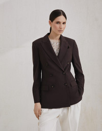 Refined materials enhance this Tropical Luxury wool blazer. The high-quality fabric complements the tailored-inspired garment, characterized by slightly oversized shoulders and a regular waist that highlight the silhouette. The embroidered monili detail behind the neck completes the blazer with an elegant, feminine sparkle. MATERIALS The lightweight fabric combines the virgin wool natural fiber with a percentage of synthetic to provide added comfort. DETAILS Horn button closure Silk-blend crepe lining Peak lapel Chest pocket Hand pockets with flap Cuffs have four horn buttons Single back vent Nickel-free monili decoration 75% VIRGIN WOOL, 23% NYLON, 2% ELASTANE