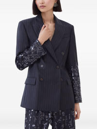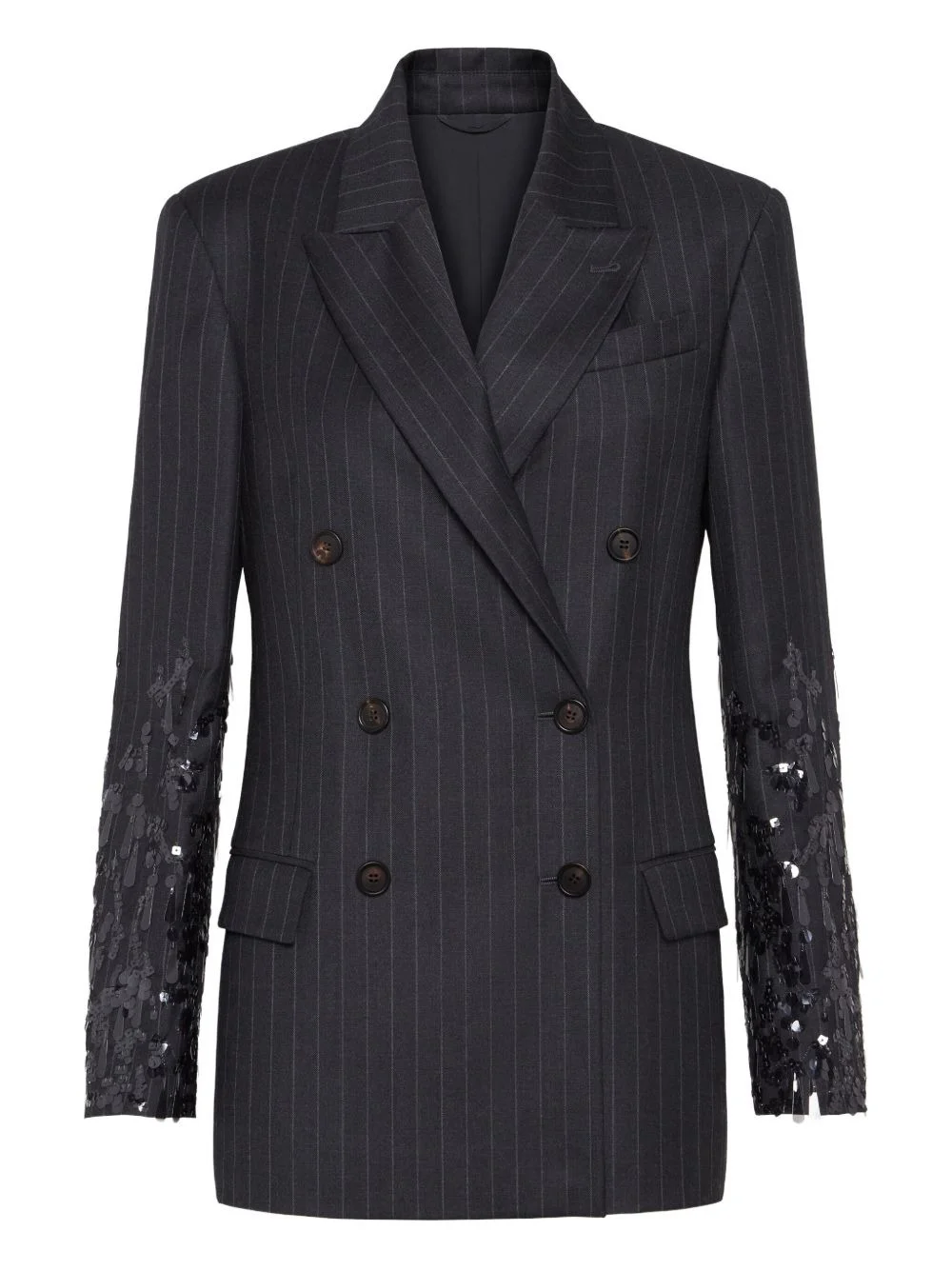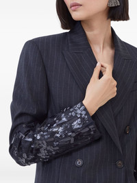 pinstripe sequin-embellished blazer Highlights - Charcoal grey - Pinstripe pattern - Double-breasted fastening - Sequin embellished cuffs - Long sleeves Made in Italy Composition Outer: Sequin 100%, Virgin Wool 100% Lining: Silk 100% Washing instructions Read Manufacturer Guidelines