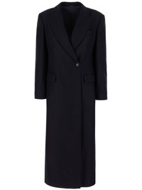 double-breasted coat Highlights - Midnight blue - Wool blend - Textured finish - Double-breasted button fastening - Peak lapels - Long sleeves - Buttoned cuffs - Chest welt pocket - Two side flap pockets - Central rear vent - Straight hem - Long length Made in Italy Composition Wool 98%, other fibers 2%