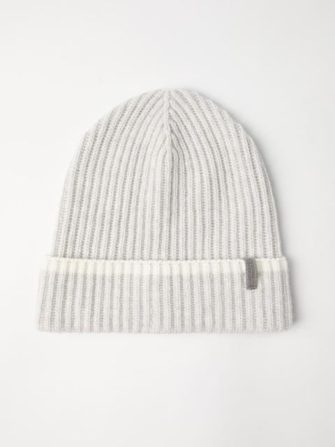 Cashmere English rib knit beanie with monili