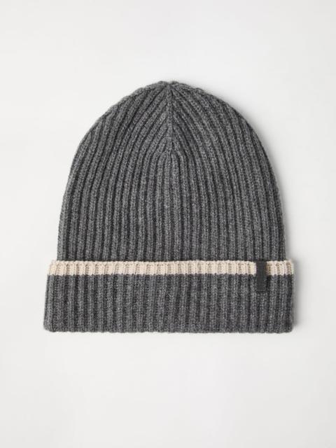 Noble Brunello Cucinelli fibers enrich this new cashmere knit beanie. Timeless English rib knitting enhances the soft yarn and emphasizes the accessory’s exquisitely wintry feel. The shiny monili detail adds a feminine sparkle. MATERIALS The noble cashmere fiber is characterized by an extreme fineness and also for its precious insulating qualities which guarantee warmth, providing coverage and lightness when worn. DETAILS Rib knit Nickel-free monili decoration 100% CASHMERE
