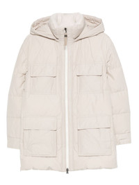 hooded flap-pocket puffer coat Highlights - Beige - Classic hood - Zip fastening - Flap pockets - Quilted design - Padded construction Made In Italy Composition Outer: Polyester 55%, Cotton 45% Lining: Nylon 100% SIZE & FIT Model measurements Height 5 ft 11 in(1.8 m) Bust/Chest 31.49 in(80 cm) Hips 36.61 in(93 cm) Waist 24.4 in(62 cm) Washing instructions Dry Clean Only