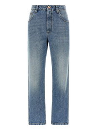 five-pocket jeans Highlights - Blue - Five pockets - Back jewel detail - Zip and button closure - Straight leg Made in Italy Composition Cotton 100% Washing instructions Read Manufacturer Guidelines