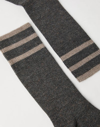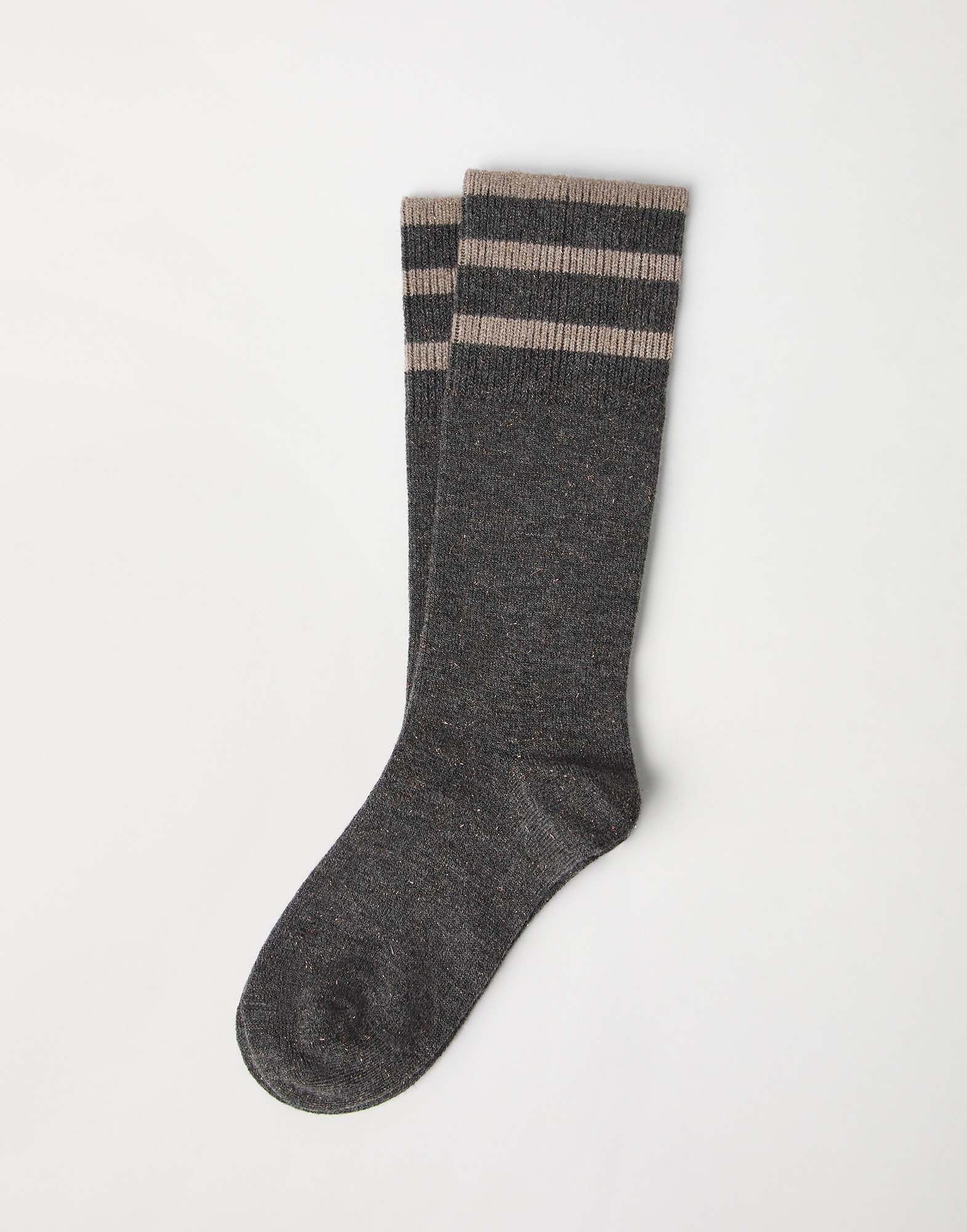 A must-have women’s accessory, these cashmere Sparkling yarn socks convey the beauty of Brunello Cucinelli knitwear. The soft yarn marries the superior qualities of the natural fibers with a lame thread that spreads delicate metallic reflections throughout the surface. MATERIALS The soft and lightweight cashmere Sparkling yarn combines the natural fiber’s refined qualities with a lame thread that enriches the texture with delicate reflections. DETAILS Calf length 46% CASHMERE, 41% VISCOSE, 13% POLYESTER