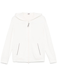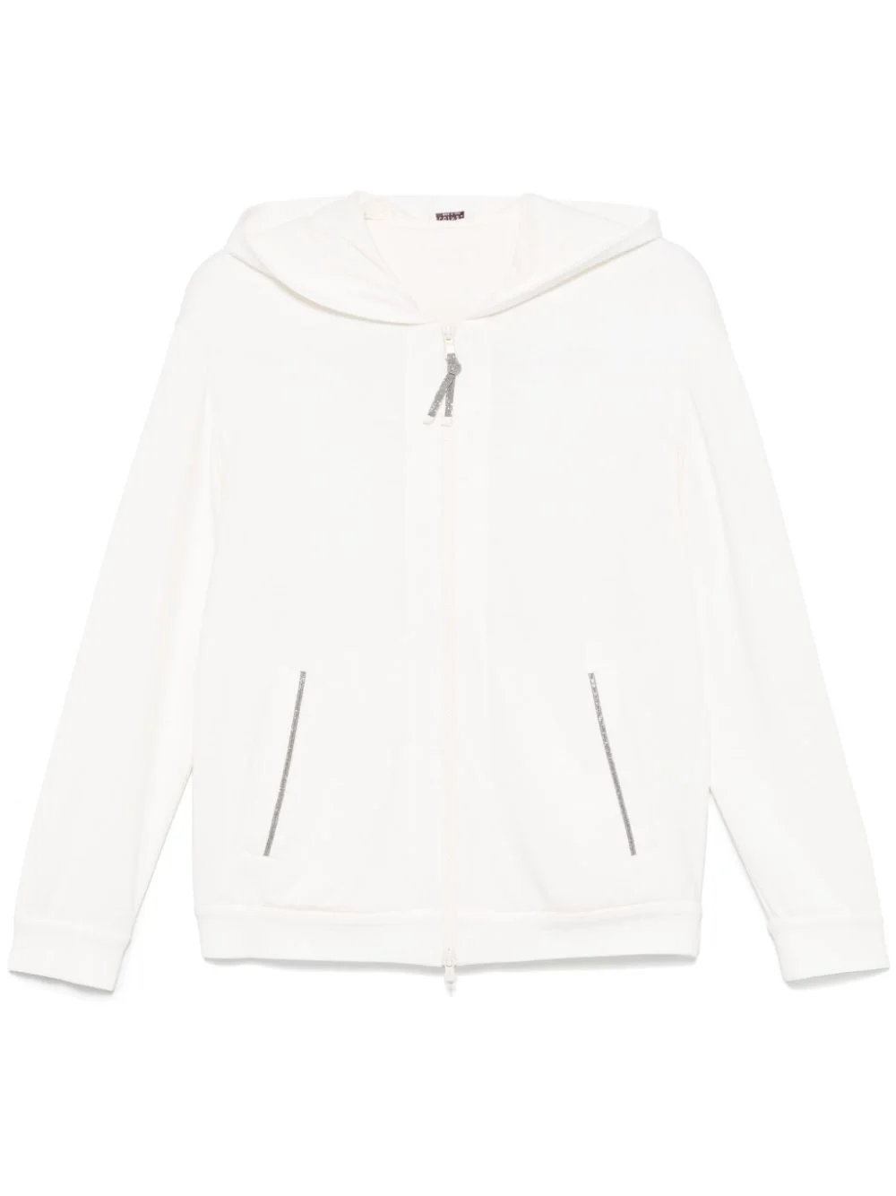 Monili-chain hoodie Highlights - White - Front two-way zip fastening - Two front welt pockets - Ribbed cuffs and hem Made in Italy Composition Cotton 67%, Silk 31%, Polyamide 2% SIZE & FIT Model measurements Height 5 ft 11 in(1.8 m) Bust/Chest 33.07 in(84 cm) Hips 37.4 in(95 cm) Waist 25.19 in(64 cm) FittingInformation Designed for a relaxed fit, this piece allows for comfort and movement when worn Made from a midweight non-stretch fabric, this piece offers minimal elasticity when worn