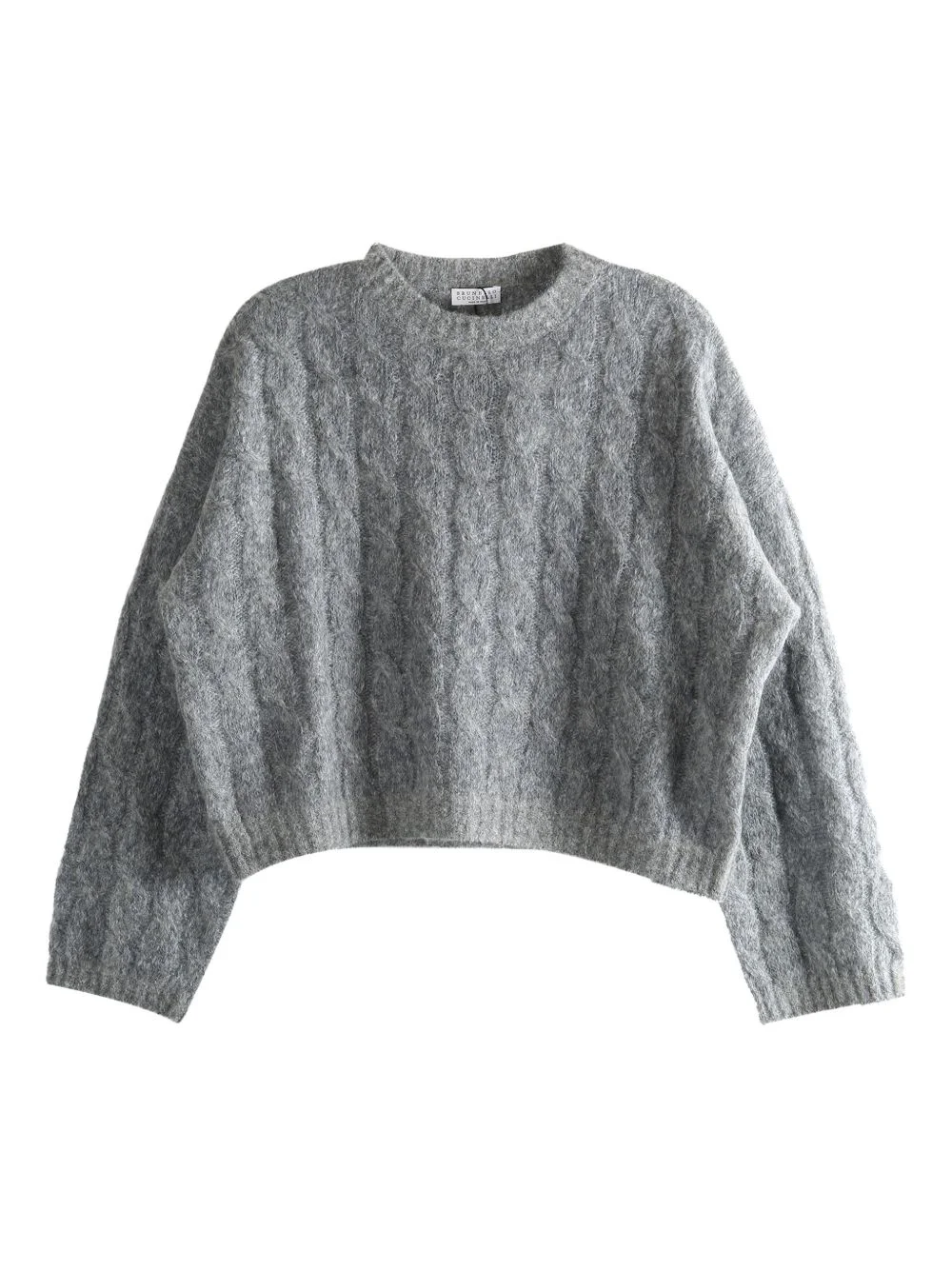 cable-knit sweater Highlights - Blue-grey - Cable-knit - Crew neck - Long sleeves Made in Italy Composition Wool 60%, Mohair 40% Washing instructions Read Manufacturer Guidelines