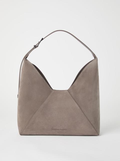 The velvety look of suede calfskin updates the retro lines of the BC Duo Hobo bag. Versatile and spacious, the style showcases soft, essential lines enhanced by the refined leather’s elegant texture. The adjustable strap features a practical buckle, completing the accessory with a functional detail. MATERIALS Calfskin suede has an elegant, sophisticated appearance characterized by its unmistakable velvety, slightly uneven texture. DETAILS Adjustable shoulder strap Magnetic snap closure Leather lining 2 open internal compartments Bag is 40 cm (15,75") long, 16 cm (6,30") wide and 26 cm (10,24") high REAL LEATHER