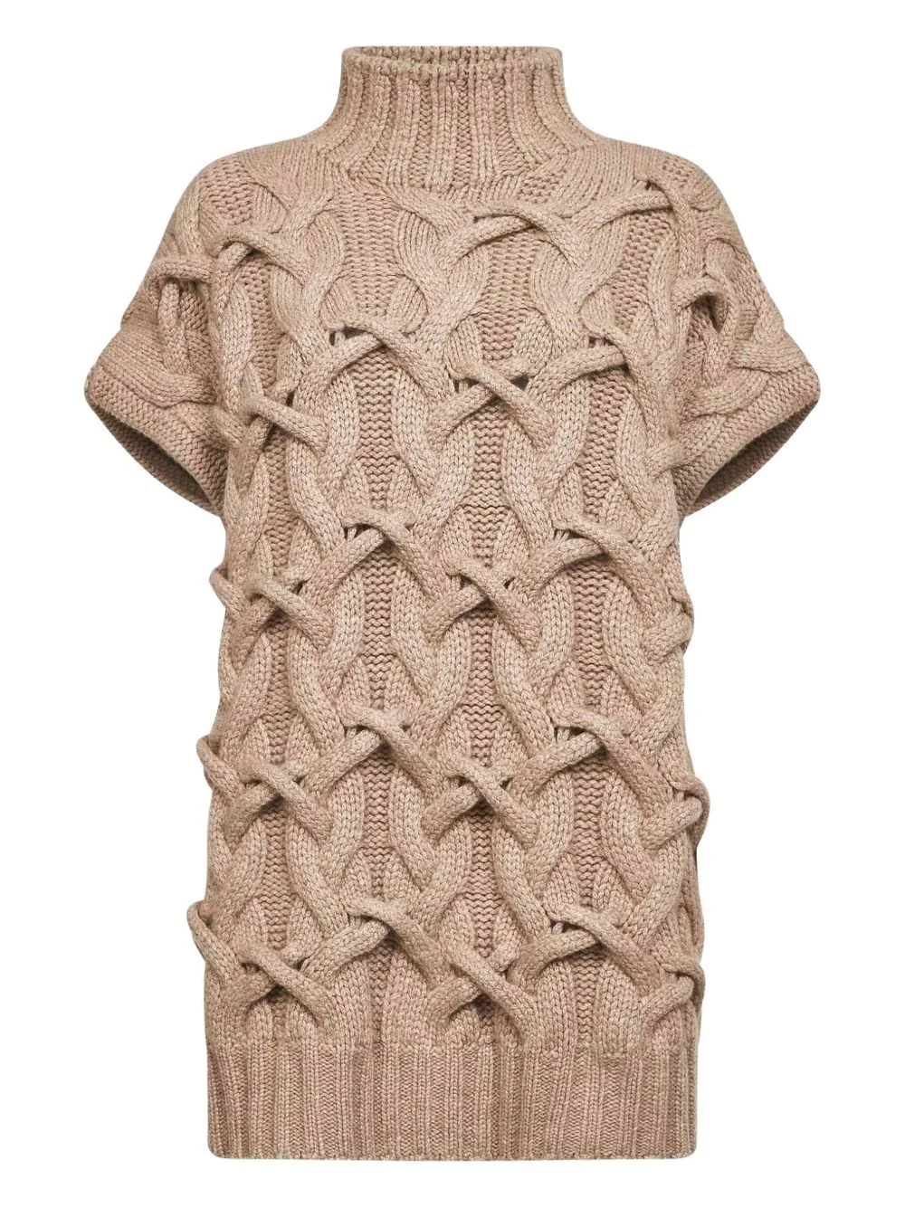 cable-knit sweater Highlights - Brown - Ribbed mock neck - Short sleeves - Cable knit Made in Italy Composition Cashmere 100% Washing instructions Read Manufacturer Guidelines