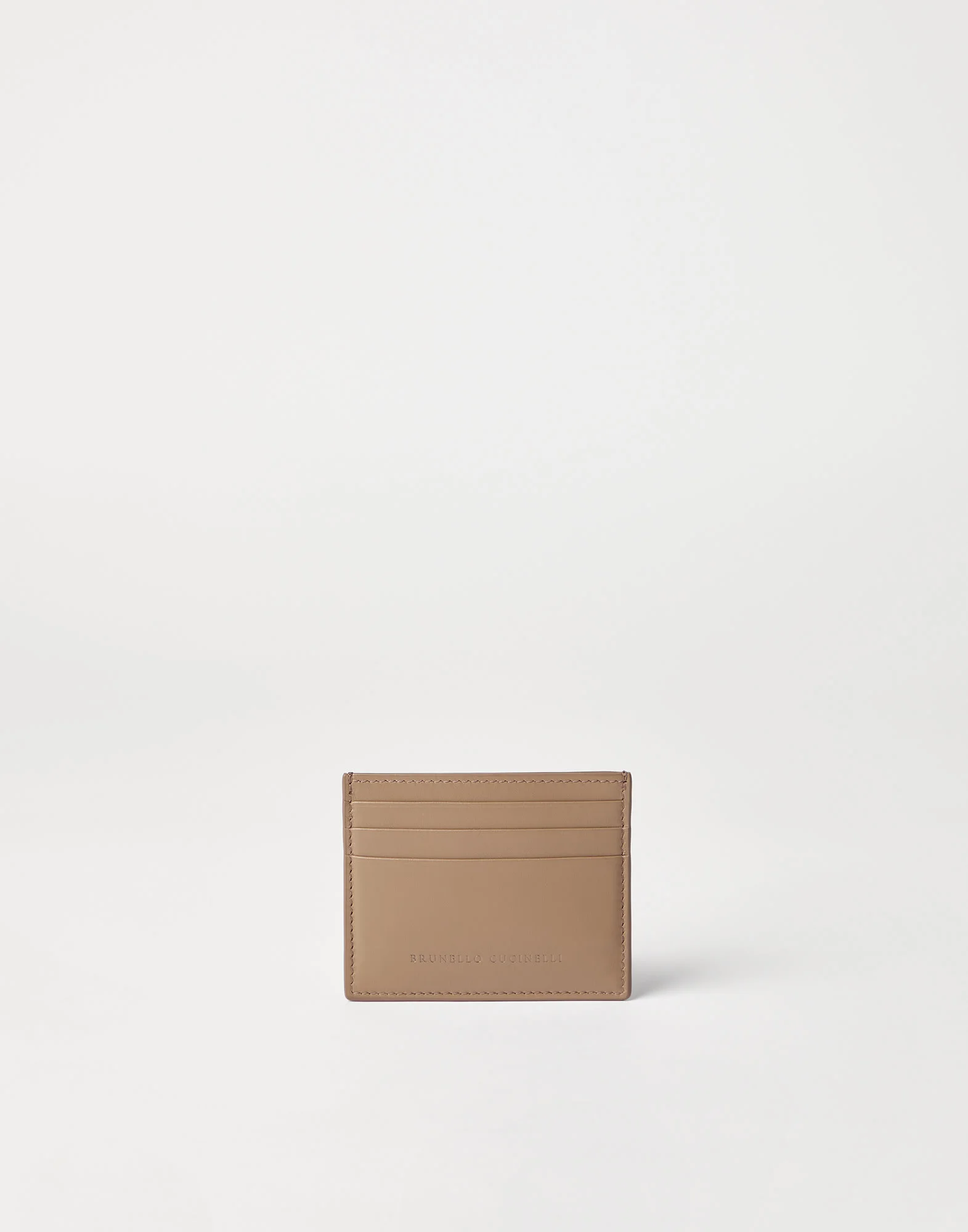 Fine materials define the style of the calfskin card case. Ultra-soft and compact calfskin enhances the essential and functional design. Equipped with several card and ticket compartments, the card case is complemented by the iconic Brunello Cucinelli logo. MATERIALS The refined calfskin showcases a smooth, soft and even texture. The leather’s matte appearance brings out the season’s colors with an intense, rich effect. DETAILS 6 slots for cards and business cards Leather lining Accessory is approx. 10 cm long, 8,5 cm high and 0,3 cm wide REAL LEATHER