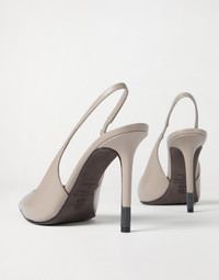 The excellence of Brunello Cucinelli materials elevates the contemporary style of these calfskin slingback heels. The footwear’s feminine silhouette is enriched by the natural softness of the leather, while a shiny monili detail along the heel adds a precious sparkling note. A thin elastic strap makes wearing easy. MATERIALS Refined calfskin features a smooth, soft and even texture. DETAILS Leather lining 10 cm (3,94") heel Non-slip rubber insert Nickel-free monili decoration 100% REAL LEATHER