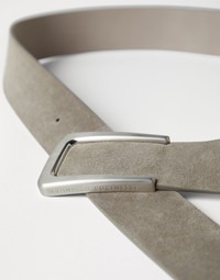 A classic yet contemporary feel characterizes this calfskin suede belt. The refined leather gives the accessory an elegant aesthetic, while the essential, geometric shape of the buckle adds an element of modern inspiration. A leather lining completes the style. MATERIALS The sueded calfskin showcase the characteristic velvety texture and extremely soft hand. DETAILS Belt height approx. 4 cm (1.57") REAL LEATHER