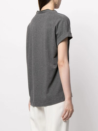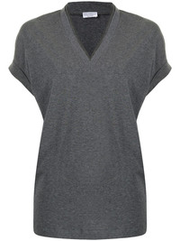 cap-sleeve knitted top dark grey cotton V-neck cap sleeves straight hem Made in Italy Composition Cotton 93%, Elastane 7% SIZE & FIT Model measurements Height 5 ft 10 in(1.78 m) Bust/Chest 31.88 in(81 cm) Hips 34.64 in(88 cm) Waist 23.22 in(59 cm) FittingInformation This piece fits true to size. We recommend you get your regular size Cut for a loose fit Made with a mid-weight stretch fabric Washing instructions Hand Wash